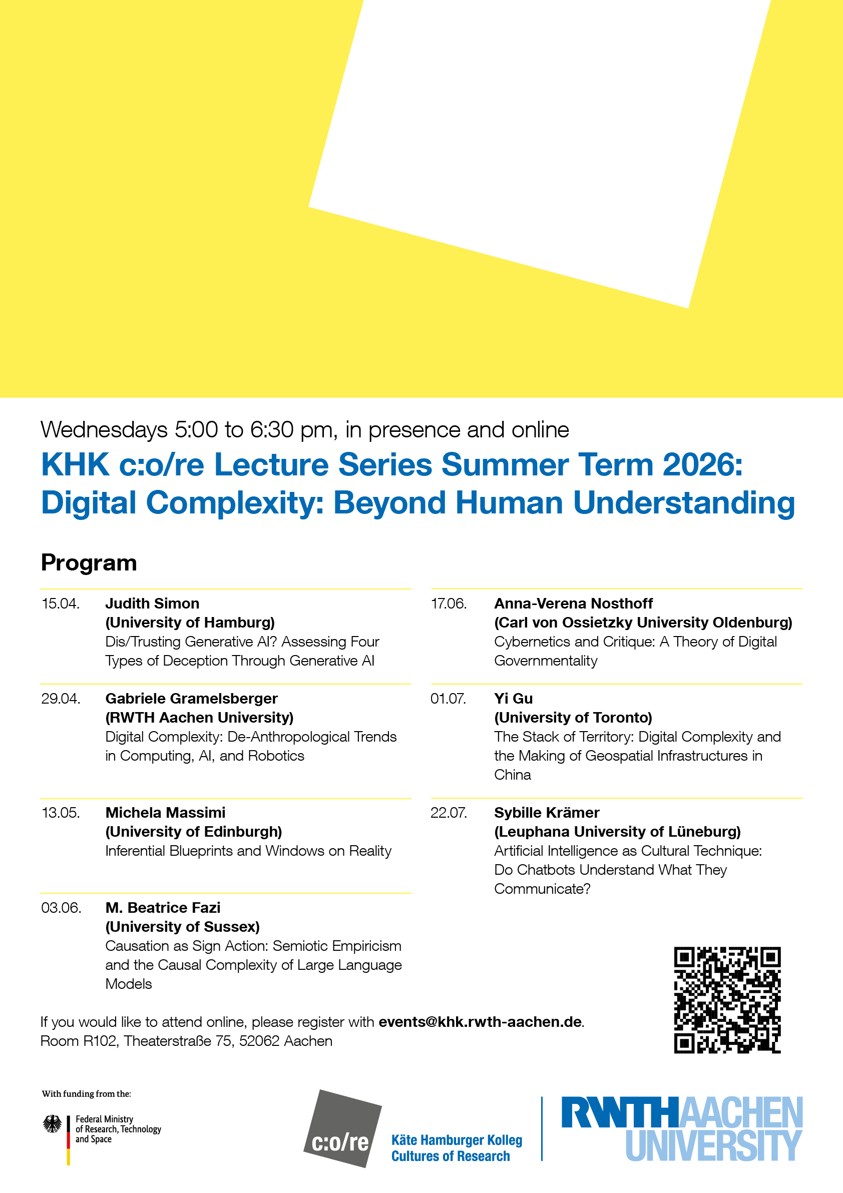 We are happy to announce that the lecture series of the summer term 2026 will continue to explore the topic of Digital Complexity: Beyond Human Understanding.